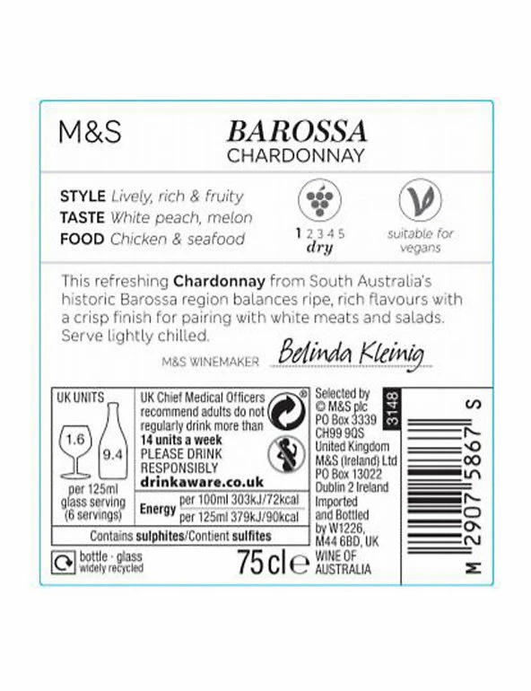 This refreshing Chardonnay from South Australia’s historic Barossa region balances ripe, rich flavours with a crisp finish for pairing with white meats and salads. Serve lightly chilled.