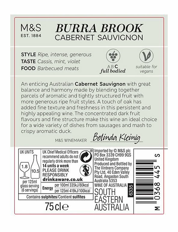 An intense fruit-filled red from South Eastern Australia with enticing flavours of cassis, mint and eucalyptus.
