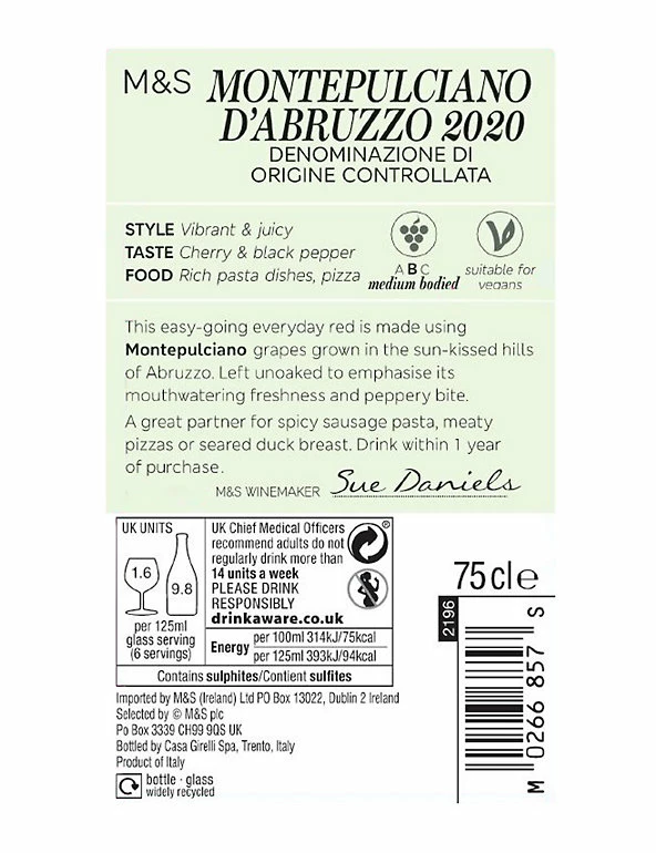 This easy-going everyday red is made using ripe Montepulciano grapes grown in the sun-kissed hills of Abruzzo. Left unoaked to emphasise its mouth-watering freshness and peppery bite.
