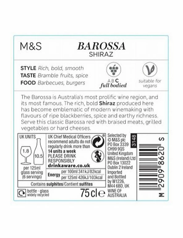 The Barossa is Australia’s most prolific wine region, and its most famous. The rich, bold Shiraz produced here has become emblematic of modern winemaking with flavours of ripe blackberries, spice and earthy richness. Serve this classic Barossa red with braised meats, grilled vegetables or hard cheeses.