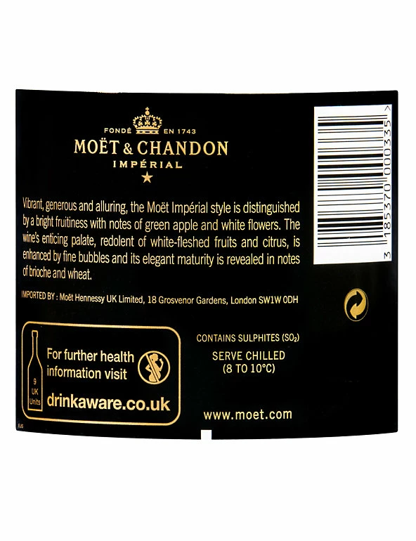 Sure to give any celebration a sense of style, Moet Imperial – first created in 1869 – is distinguished by its vibrancy, seductiveness and elegance. A truly iconic champagne. Moet Imperial is created in the heart of Champagne from more than 100 wines (of which 20-30% are reserve) carefully selected to enhance the champagne’s complexity and constancy.