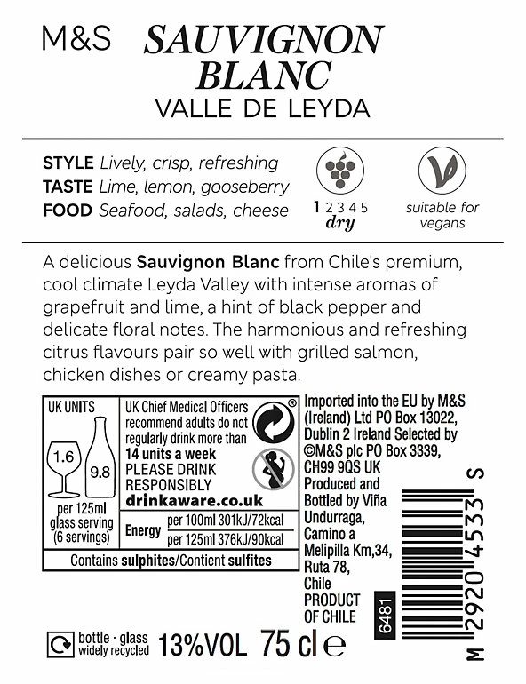 A delicious Sauvignon Blanc from Chile’s premium, cool climate Leyda Valley with intense aromas of grapefruit and lime, a hint of black pepper and delicate floral notes. The harmonious and refreshing citrus flavours pair so well with grilled salmon, chicken dishes or creamy pasta.
