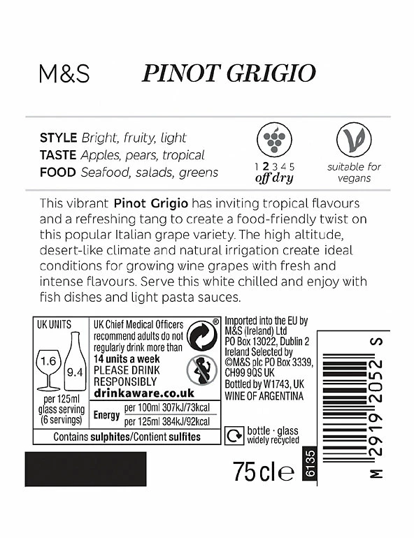 This juicy Pinot Grigio has inviting tropical flavours and a refreshing tang to create a food-friendly twist on this popular Italian grape variety. Mendoza’s high altitude, desert-like climate and natural irrigation create ideal conditions for growing wine grapes with freshness and intense flavours. Serve this white chilled and enjoy with fish dishes and light pasta sauces.