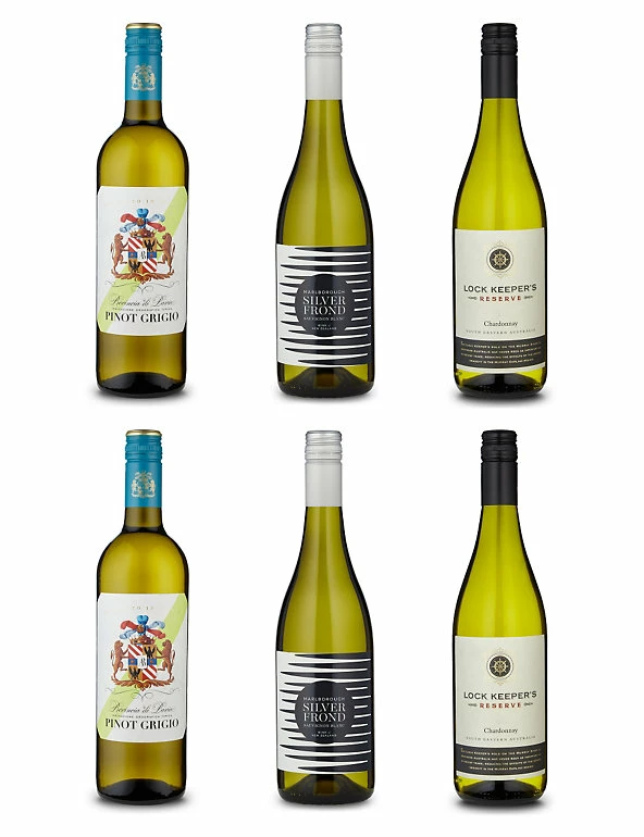 Three pairs of wonderful white wine, from light and fresh Pinot Grigio to herbaceous Sauvignon Blanc. The perfect tipples for any occasion.